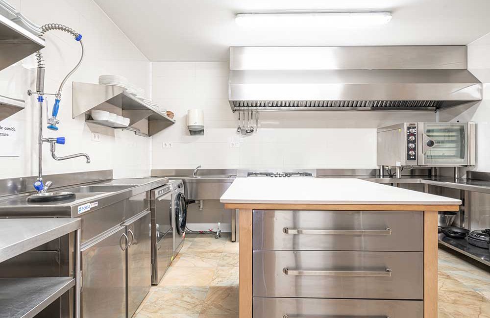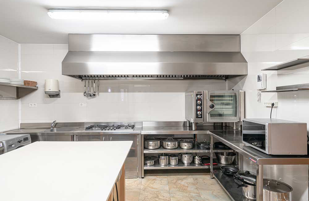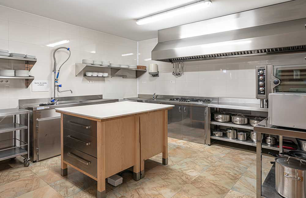 La casa dispone de una amplia cocina profesional, equipada con: lavavajillas industrial, lavadora, placa de gas con cinco fuegos, horno de convección y vapor, dos frigoríficos y un congelador y microondas.