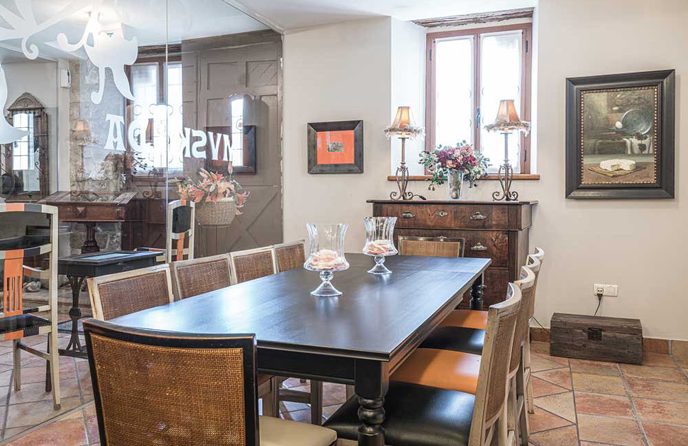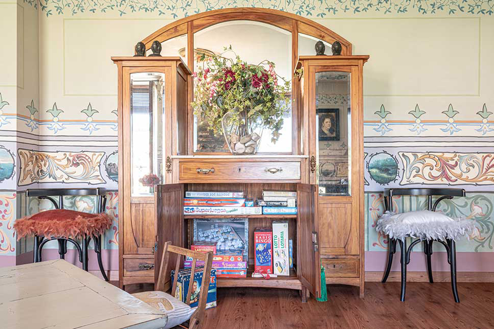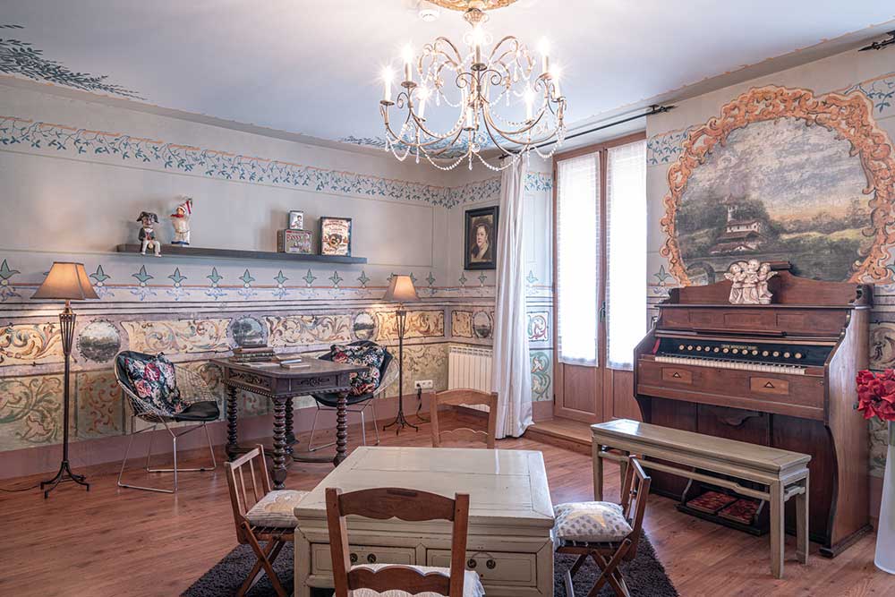 Alberga en su interior interesantes frescos pintados, que confieren al conjunto un encanto innovador. El conjunto patrimonial del establecimiento se completa con la restauración y aprovechamiento de una gran parte del mobiliario que decora la casa.
