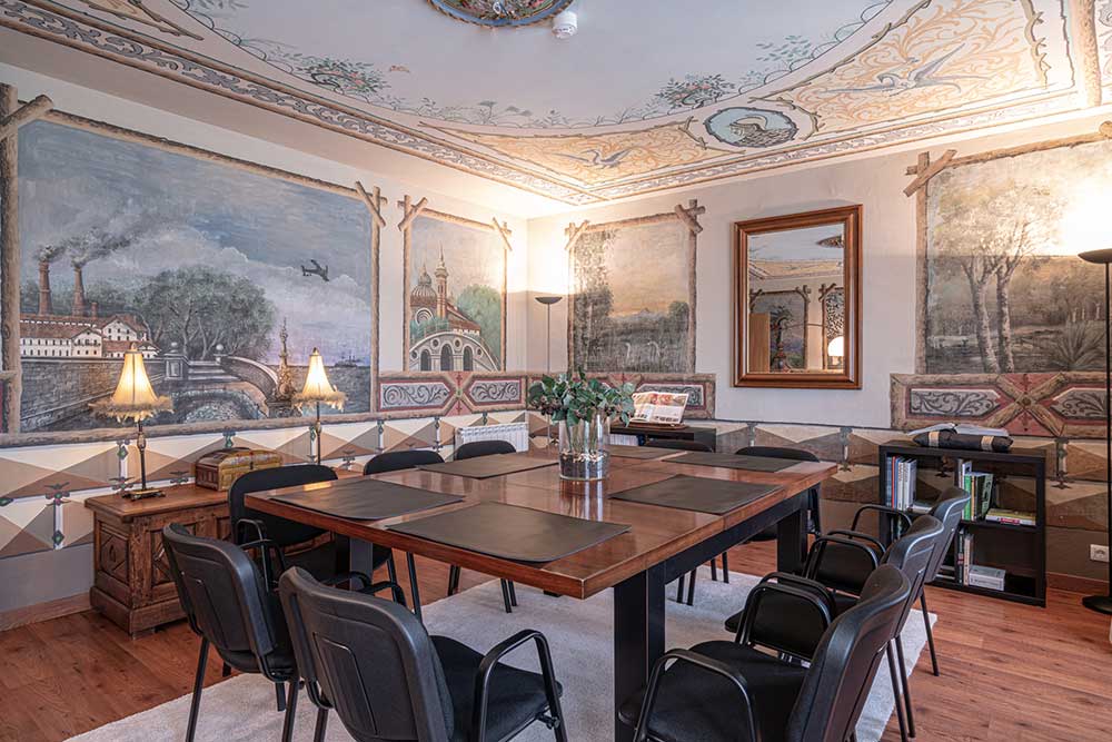 Ambas salas decoradas con interesantes frescos, pintados en la primera mitad del siglo pasado, por un artista ruso, que confieren al conjunto un encanto y atractivo muy especial.